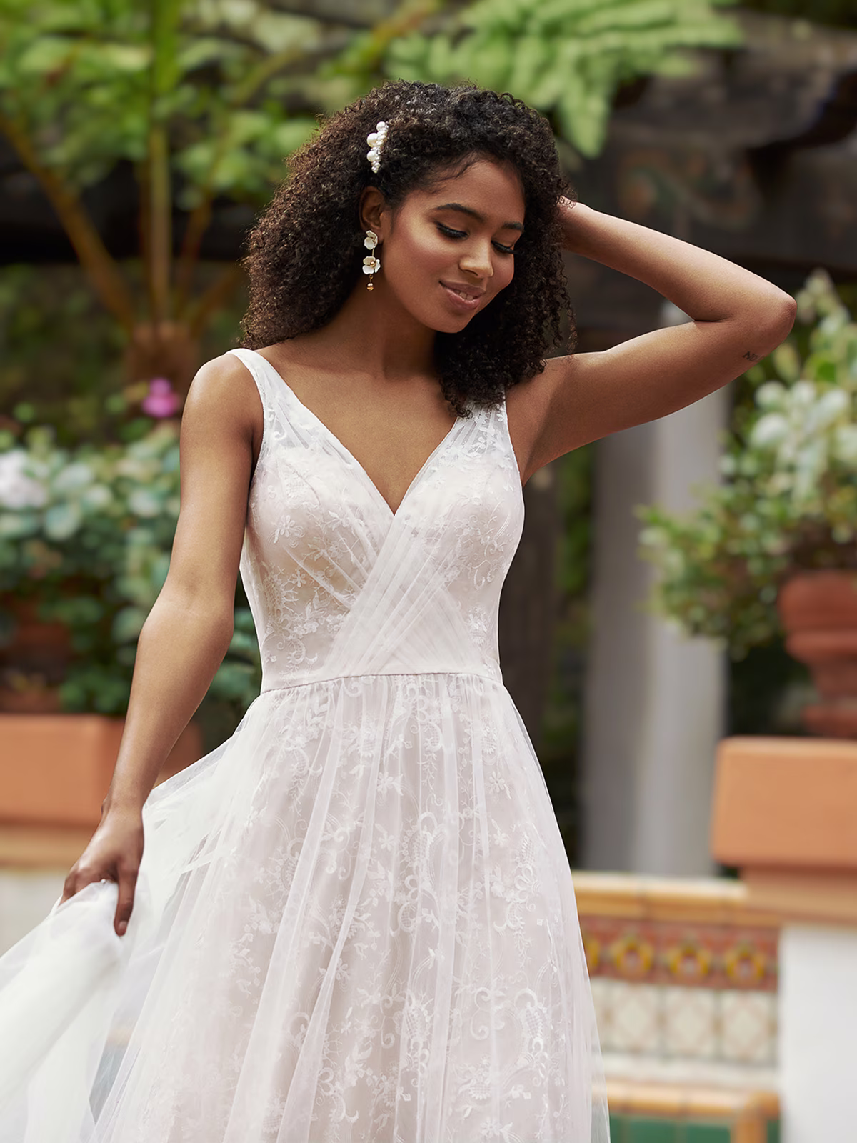 Consider a classic and refined tulle mermaid wedding dress with romantic appeal. With your unique intuition and timeless style, you will likely be drawn to soft fabrics, lace and a classic silhouette. A fitted bodice of embroidered lace and a sweetheart neckline will compliment your traditional sensibilities while providing a subtle touch of drama and effortless sophistication.