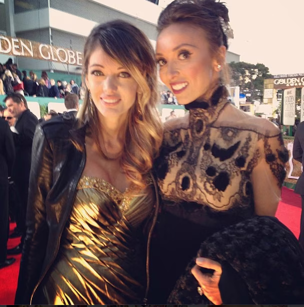 Patricia Zavala in custom Val Stefani with Giuliana Rancic at the 2013 Golden Globes